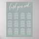 Welcome your guests with this elegant dusty sage wedding seating chart. Featuring a minimalist design with modern script that says find your seat, this seating chart is perfect for a sophisticated and stylish wedding. The soft color and clean layout provide a refined and organized look, ensuring your guests can easily find their seats. Customize with your names and table arrangements to create a unique and cohesive addition to your wedding decor. This seating chart accommodates up to 12 tables, making it ideal for a well-planned and elegant celebration.
