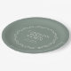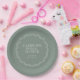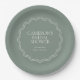 Perfect for spring or summer garden bridal showers, this elegant design features a wavy scallop border on a dusty sage green background. Personalize these bridal shower plates with your event name, the date, and year.