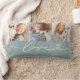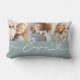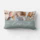 Muted dusty teal and white love script with a heart flourish anchor three personalized photo frames on this lumbar pillow. The sophisticated gray-green tone adds a calm, modern accent to any room. Showcase your favorite family memories, pet portraits, couple photos, or any mix of moments that tell your story.