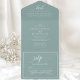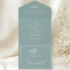 This all-in-one invitation features a dusty teal backdrop paired with a modern script font, exuding minimalist elegance. The clear and easy-to-read design ensures your guests receive all the essential information for your wedding celebration.