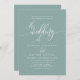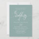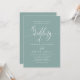 Plain white envelopes are included with paper invitations and will come to fit the invitation size you select. If you don’t need the envelopes, you may choose to not receive them by selecting the dropdown below "Envelopes" and choosing "None." If you’d like to have a design on your envelopes, you can browse all of these available envelopes to find the design that complements your Dusty Teal Simple Modern Script Wedding Invitation.