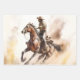 Dusty Western Watercolour Cowboy Riding Mustang Wrapping Paper Sheets