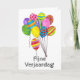 Dutch Birthday card Colored Balloons. This colorful balloon card is an original hand drawn watercolor painting. This card is also available in some other non english languages