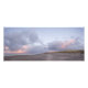 Panorama format photo print of colorful clouds over dunes, beach and North Sea during a sunset at Scheveningen beach in the Hague at the coast of the Netherlands.