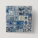 Square button with an image created to resemble ceramic, tin-glazed Delft Dutch tiles.