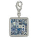 Square sterling silver-plated charm with an image created to resemble ceramic, tin-glazed Delft Dutch tiles.