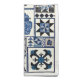 Set of 4 20” x 20” cloth dinner napkins with an image resembling ceramic, tin-glazed Delft Dutch tiles.