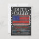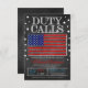 Army Deployment DUTY CALLS invitation with a faux chalkboard look and American flag! A great invite to give well wishes to the soldier before he or she leaves on deployment! Features a faux chalkboard background and American flag graphic.