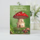 a nice dwarf house hidden in the forest - surrounded by a small lake and the frame is made of trees and mushrooms - Fill in your information in the template. Or delete for no text. Click on Customize to change font size, style, and color