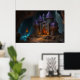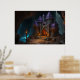 Poster of a Dwarven castle under the earth inside a mountain. Following the rocky trail below the ground, you listen to the distant sound of hammers pounding steel, and as it gets louder a cave mouth opens to this impressive citadel of smith Dwarves. Feeling the hot air of the Dwarven foundries, you walk ahead towards adventures unknown. This image was created with Leonardo.ai and further altered by me.