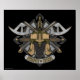 The Hobbit: The Battle of the Five Armies | This Dwarves Of Erebor shaded cartoon graphic shows Dwarven weaponry and armor forming a crest.