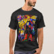 My 11 yo wore adult XL (5’7” 165#). The 8yo is small framed. She wore adult small and tied it in the back. Grandma wore adult large with long sleeve shirt underneath. Tall girl adult medium. Dark haired male adult large. Good quality dark Heather gray, Gildan brand shirt. -it was next up from basic choice and cost about $20 per shirt. Not too thick or thin. Washed and dried well, no major shrinkage. Not see-through. Can wear a bra under it fine. Screen print is just as shown and well done, front and back.