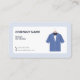 A business card for a dyeing and dry cleaning service with an illustration of a clean shirt hanging on a hanger with a perfectly ironed.
