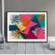 A striking abstract composition of sharp angles, bold textures, and energetic color contrasts. This geometric artwork explodes with fuchsia, mustard yellow, teal, navy, and coral tones layered with expressive lines and textural elements. Perfect for modern interiors that crave a sense of motion, vibrance, and edgy creativity.