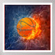 Dynamic Basketball Art Poster – Fire and Ice Explosion Design