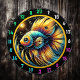 Transform your game room, man cave, or dorm with the Dynamic Betta Dartboard Wall Art. Featuring a stunningly detailed betta fish with vibrant shades of gold, blue, and magenta, this dartboard brings energy and personality to your space. Surrounded by glowing golden bubbles on a sleek black backdrop, it’s more than a game—it’s a statement piece.