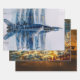 Bring bold aviation energy into your creative projects with this three‑design wrapping paper collection from RHDesigns by 2ChattyChicks. This set features a dynamic Blue Angels motion composite, a fiery abstract jet bursting through intense color, and a dramatic runway scene with twin fighters and cinematic lighting. Each sheet is printed with crisp detail and rich color, available in 19x29 or 29x19 inches, and ships rolled to protect the artwork. Perfect for decoupage, handsaw art, wood panels, canvas builds, mixed‑media décor, and high‑impact masculine or patriotic projects, these designs deliver movement, power, and unmistakable aviation drama.