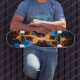 Dynamic Blue Orange Energy Clash Flame Skateboard