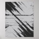 A striking abstract artwork featuring bold black strokes slashing across a pale gray background. The jagged lines and splattered textures create a sense of raw energy and aggression, as if the canvas has been torn apart by speed and force. The contrast between sharp edges and scattered drips gives the piece a gritty, intense, and almost violent rhythm.