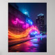 Dynamic city wall art featuring custom neon text of poetic words floating over a dark textured background, artistic LED glow effects.