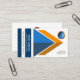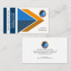 A simple minimalist design. The blue triangle and an underlying orange layer at the midsection, is to imply a moving forward motion, a move to excellence. Your prestigious name and job title lie inverted at the dark blue column towards the left side of the card ; Beside it, in the white column, is the contact details. At the top right corner rest the faux gold logo whilst at the other end, you have a slogan tagline option near the card's base.
