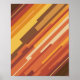 An abstract geometric design featuring diagonal rectangular stripes of varying lengths and thicknesses. The pattern is composed of warm color tones, including gradients of yellow, orange, red, and brown. The arrangement of wide and thin stripes creates a sense of motion, speed, and flowing energy. Lighter shades break the intensity of darker hues, adding balance and depth. The overall design conveys a dynamic, energetic, and modern abstract style.