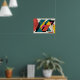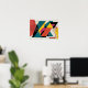 This striking abstract artwork explodes with bold geometric shapes and sharp lines in vibrant hues of teal, crimson, mustard, and black. Perfect for lovers of modern art and mid-century aesthetics, this piece brings energy and movement into any space with its edgy composition and retro-modern vibe.