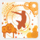 Dynamic Jump Silhouette Abstract Orange Circles Square Sticker
