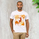 Introducing our vibrant and eye-catching Men's T-Shirt featuring a dynamic graphic design that's sure to turn heads! This one-of-a-kind tee showcases a striking silhouette of a person surrounded by a mesmerizing array of funky orange symbols. It's not just a t-shirt; it's a statement piece that exudes energy, style, and personality.