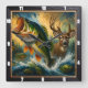 This artistic wall clock vividly illustrates a dynamic outdoor scene, combining the excitement of fishing and hunting. Featuring a majestic bass leaping from a lake alongside a powerful deer in a forest, it captures the essence of wild animals in their natural habitat. Perfect for any angler, hunter, or nature enthusiast's decor.