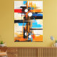 Elevate your modern living space with this striking canvas print. Featuring a bold mid-century inspired abstract composition with dynamic black lines, white circles, and vibrant splashes of orange and blue. This sophisticated gallery-quality piece brings an instant touch of retro-futuristic elegance to any room or professional office.
