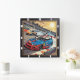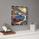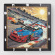 This vibrant wall clock captures the thrilling energy of motorsports with a dynamic illustration of racing cars on a track, complete with speed lines and a setting sun. It's a colorful and artistic timepiece, perfect for automotive enthusiasts and sports fans. This unique decor piece brings the excitement of competition, adding a bold and creative statement to any indoor space.