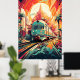 Dynamic Tracks: Vibrant Train Art on Abstract Rail Poster