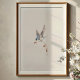 Adorn your space with this enchanting watercolor artwork featuring a graceful Tree Swallow, also known by its scientific name Tachycineta bicolor. This beautiful illustration captures the bird in a dynamic pose, wings slightly spread as it reaches for nourishment, rendered with the fluid brushstrokes and luminous quality characteristic of a contemporary watercolor style. The artwork embraces a serene, minimalist aesthetic, presenting the bird in mid-action on a slender, winding branch adorned with earthy berries, all set against a pristine, brilliant white background that emphasizes its natural elegance.