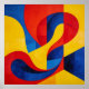 An abstract artwork that is a striking exploration of color and form, featuring sweeping, fluid curves that playfully intersect with sharp, geometric boundaries. Rendered in vivid primary hues. This piece creates a continuous sense of motion and vibrant, kinetic energy, rendered in colors of deep crimson, brilliant sunshine yellow, and cobalt blue. Perfect for modern, minimalist, or mid-century interiors, this artwork acts as a brilliant focal point that instantly brings a room to life. The interlocking ribbons of color create a mesmerizing optical depth, inviting the viewer to trace the endless, rhythmic loops of the composition. It’s an ideal choice for a living room, a creative office, or any room that needs a pop of color.