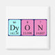 Dyon spelled out as Dy O N (Dysprosium Oxygen Nitrogen) on a magnet for the scientist in you.