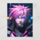 A vivid and eye-catching dystopian cyberpunk digital painting of a pink-haired street punk glowing with internal cybernetics.