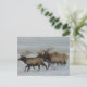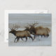 Bull Elk Postcard. Elk bulls run through the snow on the Alberta prairies, elk can move very quickly and can cover many miles in a short time.