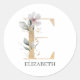 E Monogram Floral Personalized Classic Round Stick Sticker