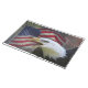 These high quality placemats feature a photo of the American flag and Bald Eagle. Image can be replaced with one of your own. A very patriotic placemat.