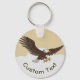 Illustration of flying eagle attacking with open wings. Custom background color. Custom text on both sides.