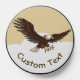 Illustration of flying eagle attacking with open wings. Custom background color. Custom text.