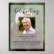 The perfect memorial poster for greeting family and friends as they enter your loved one's celebration of life. The design features a square personal photo, 5 lines of custom text and a background photo of an Eagle nature scene. You can easily change this out with your own photo background. Classic yet unique - this template is so easy to personalize and will make a wonderful memorial keepsake too.