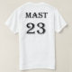 This is a design for a sports team with an eagle and line designs on it. On the back is the last name and number of the person who the shirt is for.