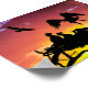 Two eagle chicks wait as a parent comes in from hunting. Their silhouettes are a stark contrast against the fiery sky of the setting sun. Computer art by Kathie Miller