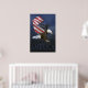 Dramatic American Eagle with USA flags as wings against a dark blue sky. Text at bottom "America". By D. Bennett from Balance America.