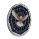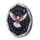 Illustration of a soaring eagle in a night celestial setting, adorned with detailed star patterns and cosmic motifs in a symmetrical composition.