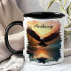 Elevate your morning routine with the Eagle in Flight Sunset Reflection Mug. This breathtaking mug features a soaring eagle captured mid-flight against a stunning sunset, with the vibrant sky and serene lake beautifully reflected below. Customized with your name, it adds a personal touch that makes it uniquely yours. Perfect for coffee, tea, or any hot beverage, this mug is an ideal gift for nature lovers, bird enthusiasts, and anyone who admires the majestic beauty of wildlife. Enjoy the splendor of the great outdoors with every sip.