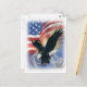 Eagle in flight with mountains and flag. Customizable with your text. Perfect for any occasion but especially patriotic holidays.