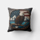 A majestic eagle stands on a branch, set against a backdrop of the American flag and mountains, embodying strength and freedom.